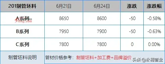 較上周五早間,今日早間市場市場201報價部分持平,部分下跌30-50元/噸;304報價部分持平,部分下跌50元/噸,目前主流報價區(qū)間:201新料在5600-5700元/噸;304新料在10150-10250元/噸。