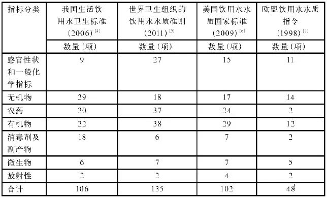 國內(nèi)外飲用水水質(zhì)標準的比較