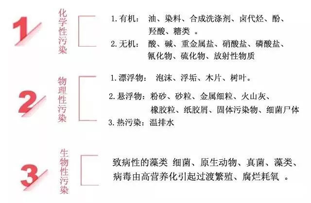 2、化學(xué)污染:當(dāng)水體受到未經(jīng)凈化處理的各種工業(yè)廢水、廢渣的污染并達(dá)到一定濃度時,飲用或食用了這種水或含有這種水的食物時,可導(dǎo)致各種急、慢性中毒,甚至引起癌癥。