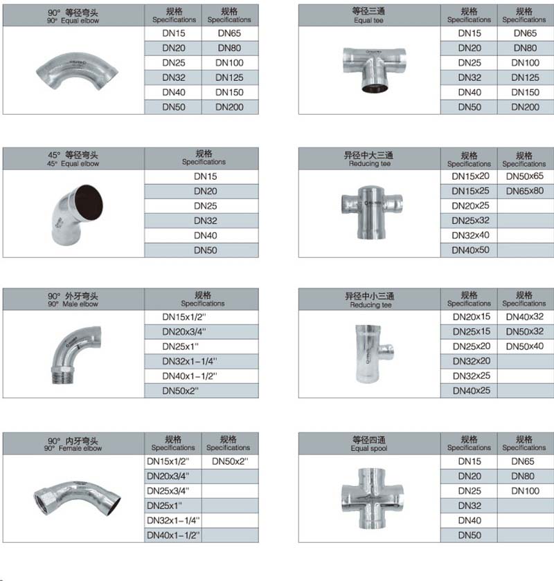 承插焊不銹鋼管件,衛(wèi)生級(jí)管件,主要適用于石油化工、醫(yī)藥衛(wèi)生、電力、航天、軍工、消防、冶金、造船、燃?xì)狻⒑穗姟⒓碍h(huán)境保護(hù)等要求承受壓力高、尺寸精密等部門及領(lǐng)域。